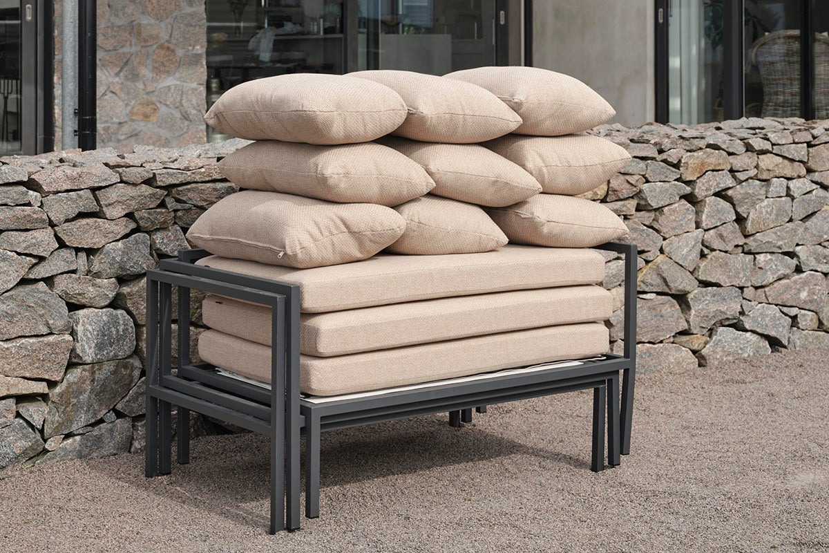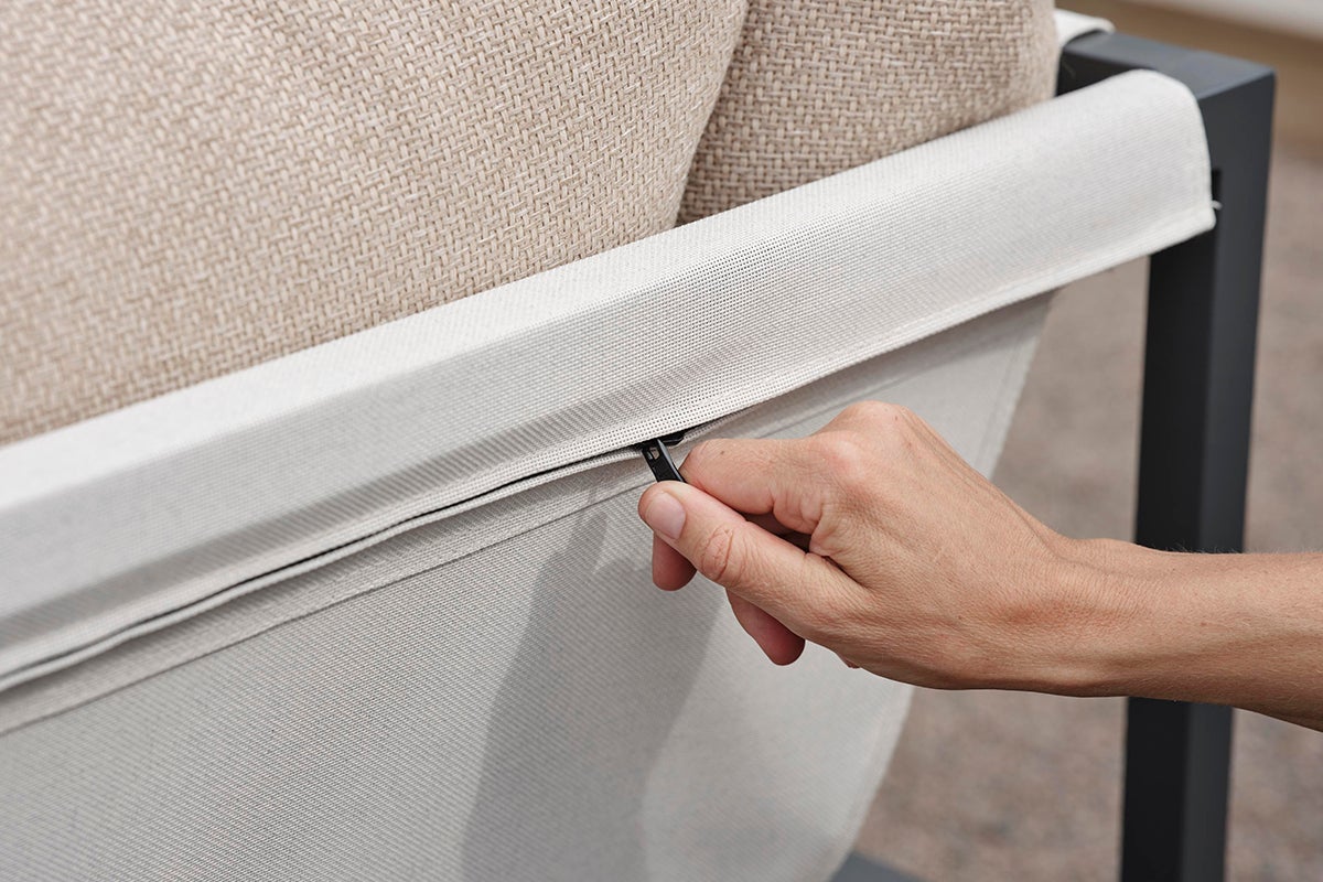 Allie – alles in einer Box. Erleben Sie die perfekte Mischung aus Einfachheit und Designraffinesse, bei der jedes Element – vom Aluminiumrahmen bis hin zum lebhaften Textilene-Sitz. Bequeme Kissen in einem modernen Gerstenfarbton – alles ist ordentlich in einer einzigen Box verpackt. Das Aufbauen Ihrer Outdoor-Oase war noch nie so einfach, sodass Sie sich auf das Genießen Ihres Raumes konzentrieren können, anstatt auf den Aufbau. Dank seiner intelligenten Konstruktion lässt es sich auch im Winter leicht verstauen.