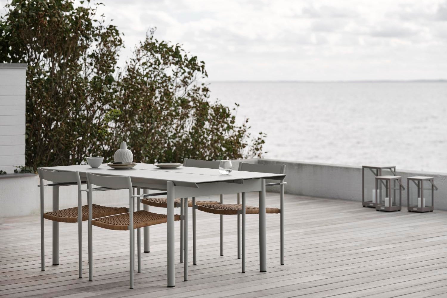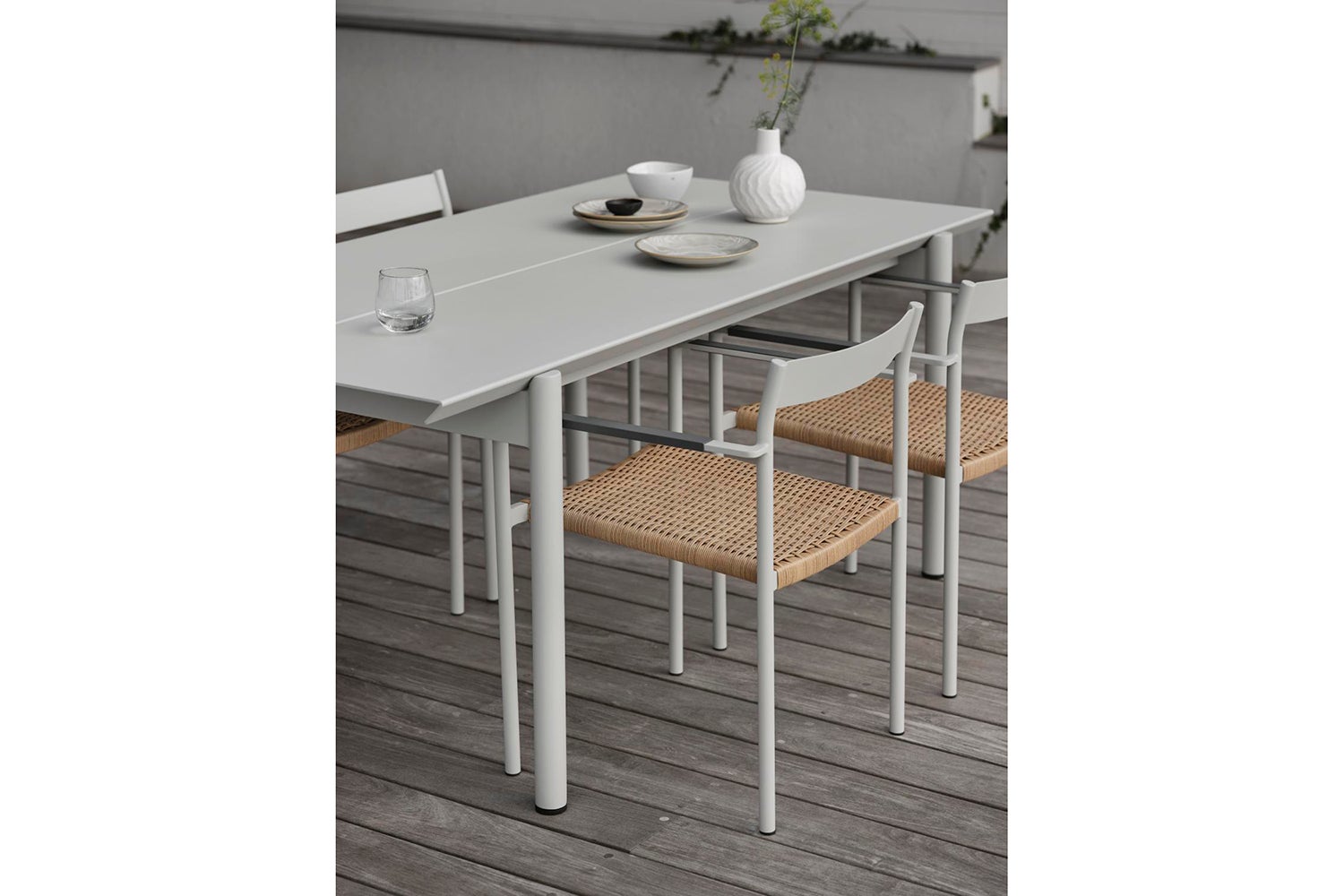 Der ganz aus Aluminium gefertigte B45 Tisch hat eine moderne, reduzierte und einladende Optik und bietet Platz für viele. Geräuschdämpfender Lack auf der Unterseite des Tisches dämpft das Klirren von Glas und Porzellan. B45 ist in zwei Längen (180 bzw. 250 cm) erhältlich, wobei der Abstand zwischen den Tischbeinen gleich bleibt. Die Kanten der Tischplatte haben einen eleganten 45-Grad-Winkel, ein Detail, das die Blicke auf sich zieht. In zwei Farben erhältlich.