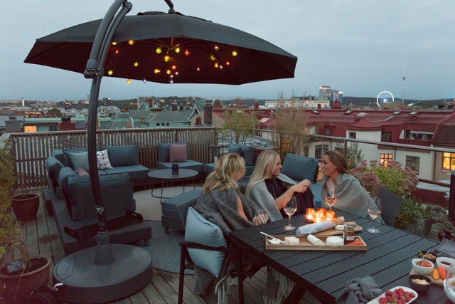 Easy sun ist ein beeindruckender Ampelsonnenschirm mit einem Durchmesser von 3,75 m. Das Gestell besteht aus Aluminium und der Schirm mit Entlüftung aus robustem Olefin. Einfaches Aufspannen und Zusammenklappen mithilfe einer Kurbel. Der Sonnenschirmfuß wird für Stabilität mit Sand und/oder Wasser gefüllt.