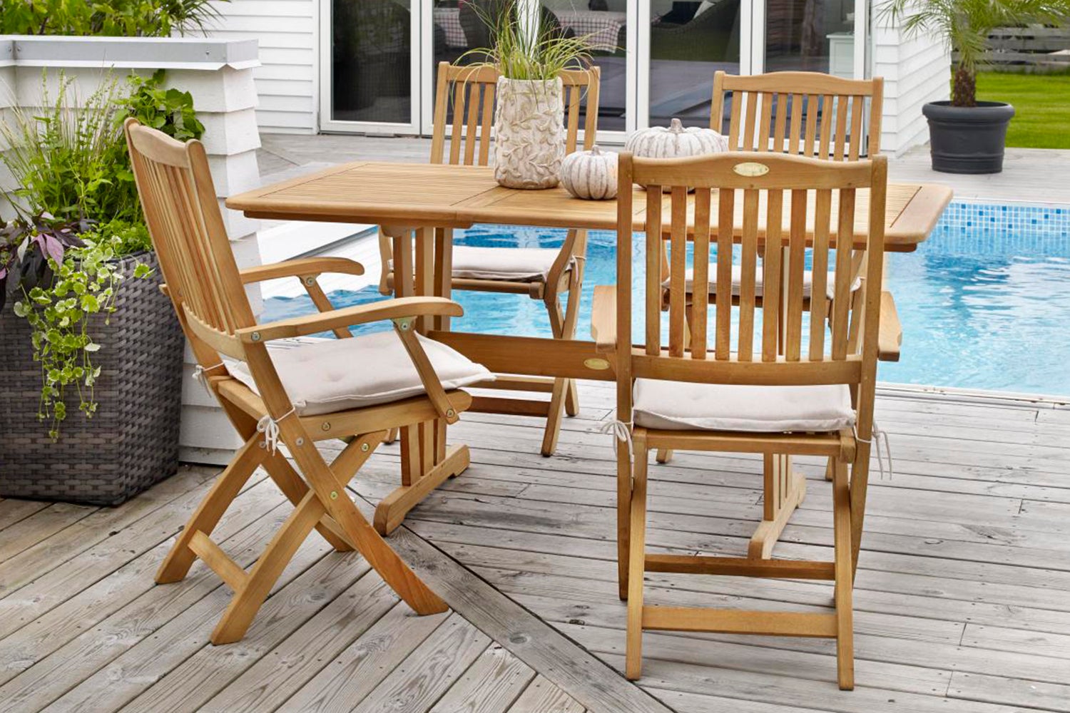 Filippa ist aus natürlichem Teakholz gefertigt und sowohl als Klappstuhl als auch als Lehnstuhl erhältlich, der ebenfalls zusammengeklappt werden kann. Der Stuhl passt hervorragend zu unseren Teakholztischen.