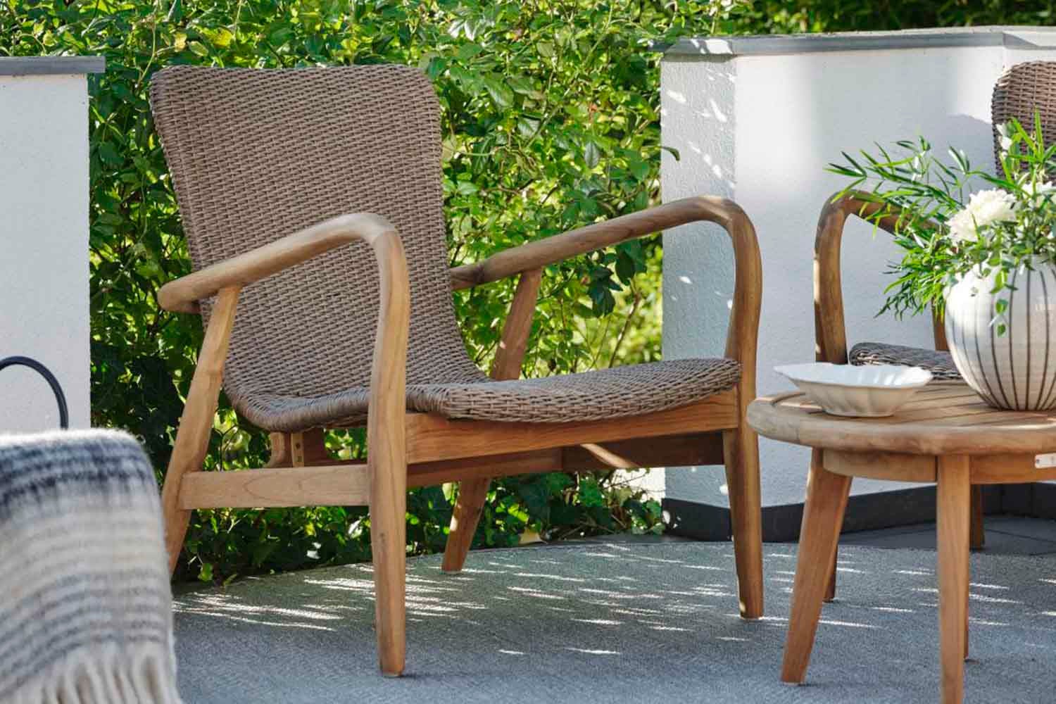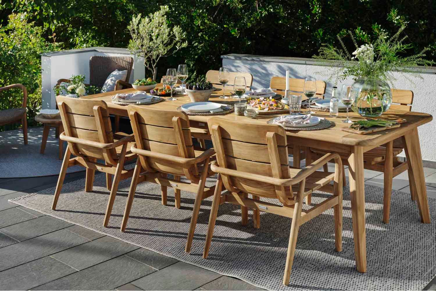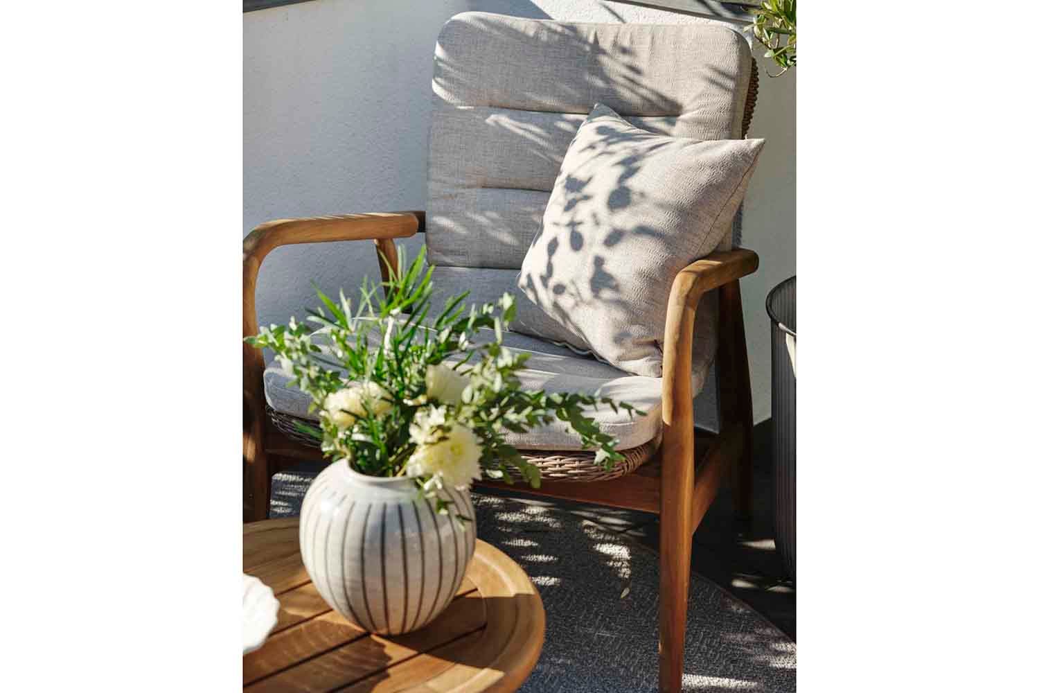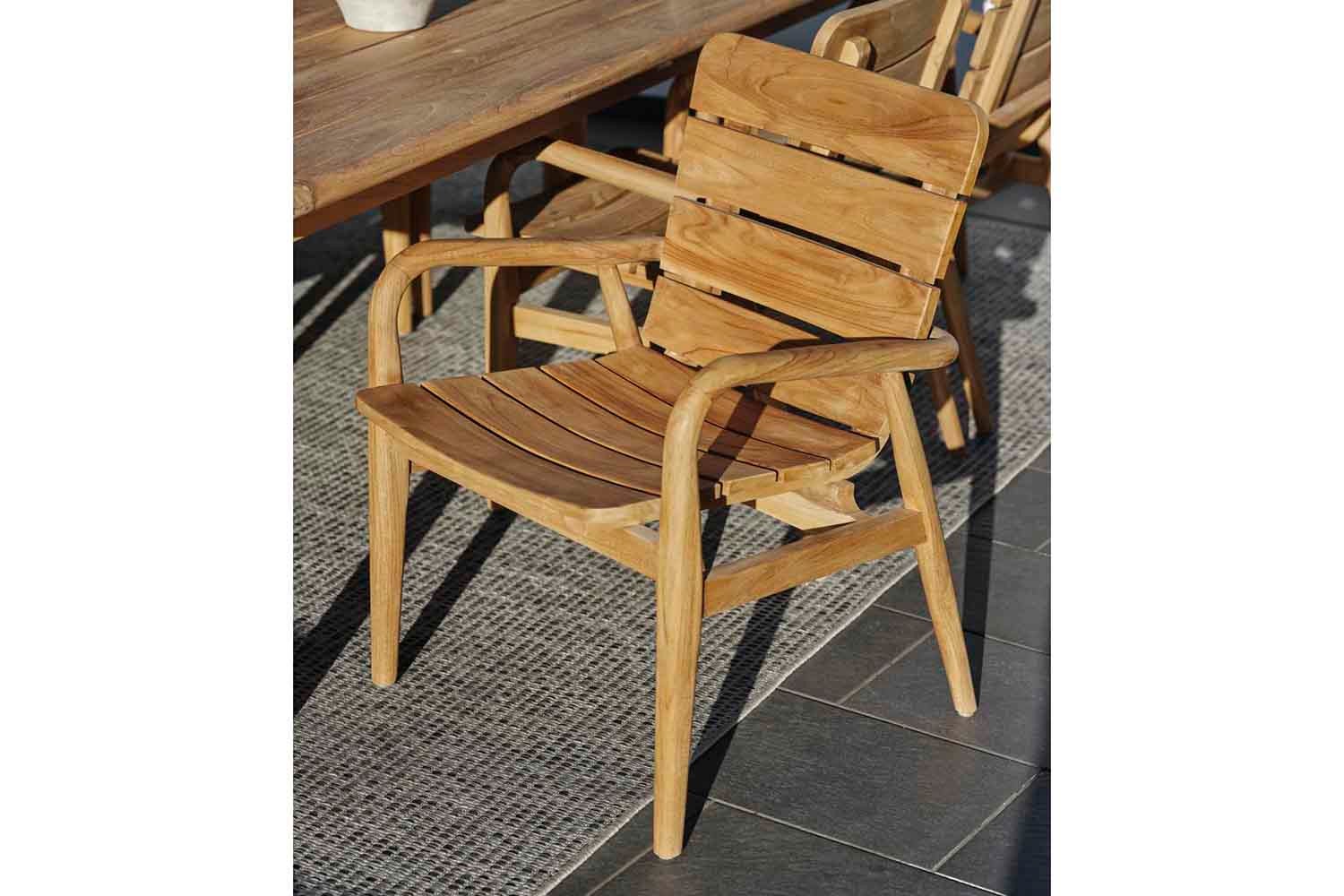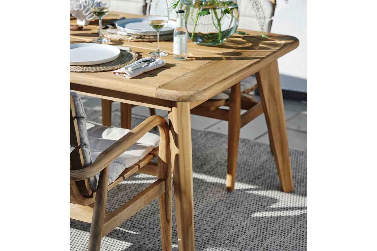Lilja ist eine Gruppe, die sowohl zum Entspannen als auch als Essgarnitur geeignet ist. Aus Teakholz in runder, organischer Form. Die Teile sind robust und strahlen durch ihre abgerundete Form Eleganz aus.