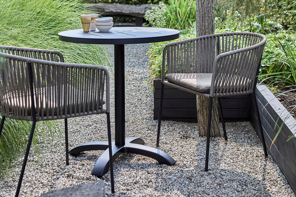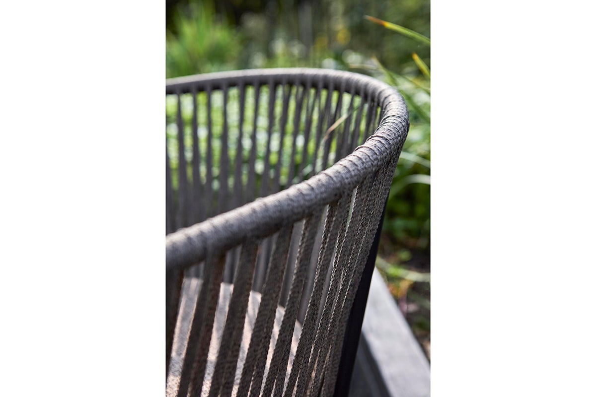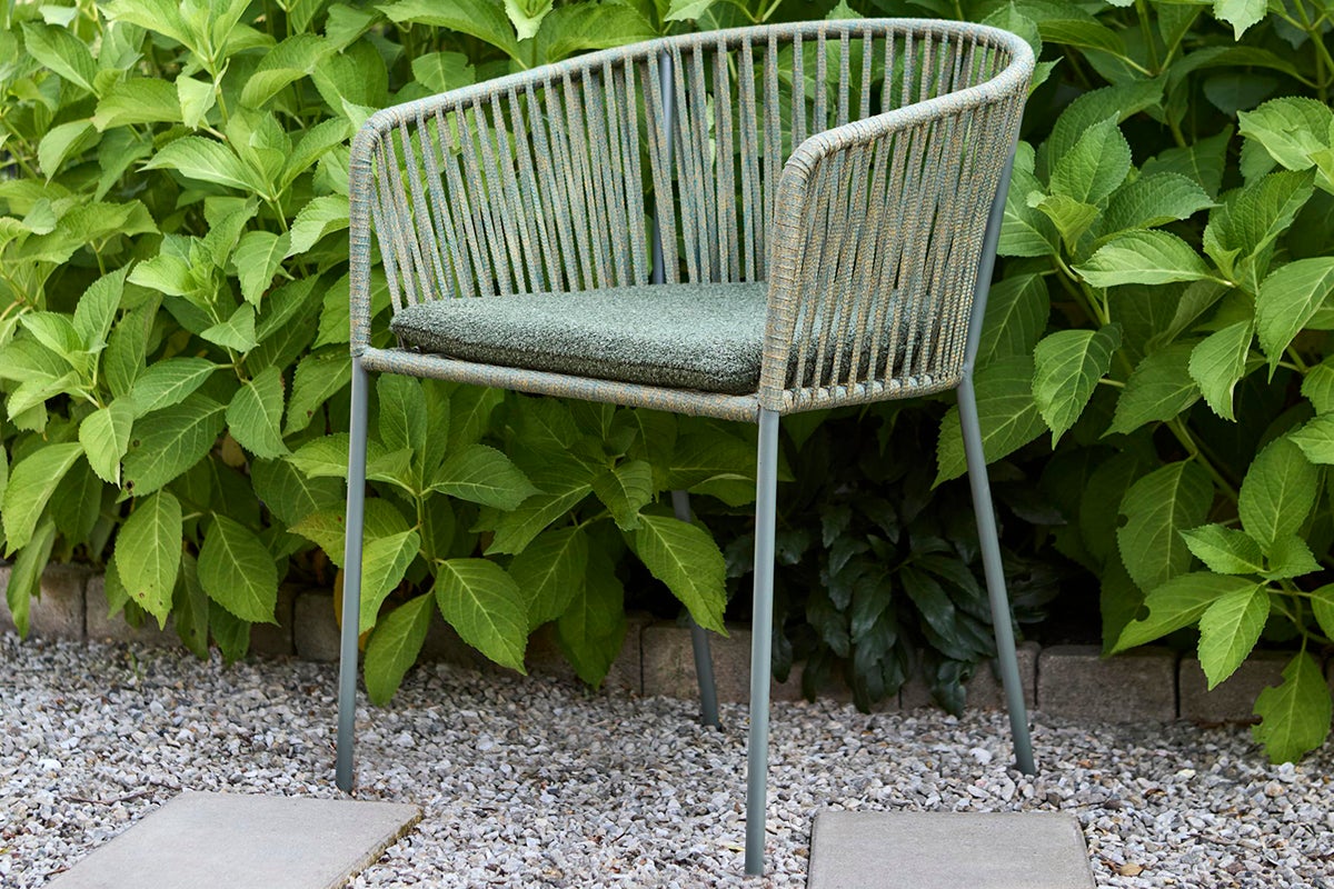 Piatto, der Esszimmerstuhl, der Komfort und Haltbarkeit mit seinem robusten Stahlrahmen kombiniert, der für den Einsatz im Freien entworfen wurde und gleichzeitig schön und stilvoll ist. Die Sitzfläche und die Rückenlehne bestehen aus breiten, gewebten Seilen, die angenehme Unterstützung bieten und einen Hauch von handwerklicher Eleganz in Ihren Außenbereich bringen. Ein Kissen ist enthalten für zusätzlichen Komfort.