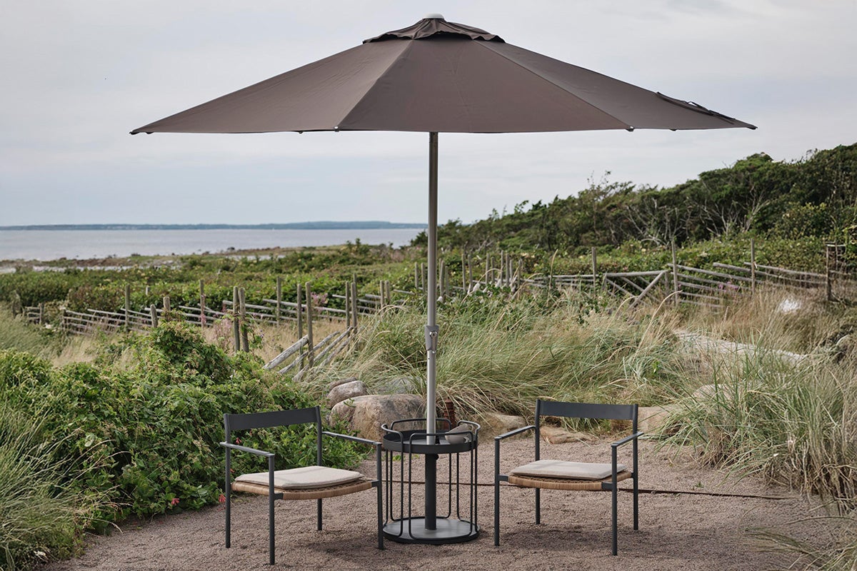Der Beistelltisch Shady ist kein gewöhnlicher Beistelltisch. Neben seiner Schwere und Robustheit mit zwei Ebenen von Tischplatten kann er bei Bedarf auch als Sonnenschirmständer dienen. Das durchdachte Design berücksichtigt, dass wir im Freien immer Dinge abstellen müssen – Dinge, die oft davon profitieren, im Schatten zu stehen. Stellen Sie also Shady neben Ihren Sessel oder Ihr Sofa und nutzen Sie seine Vorteile.