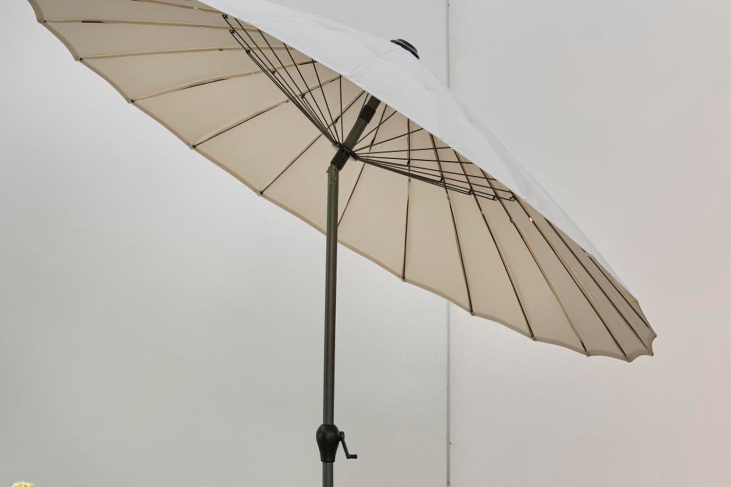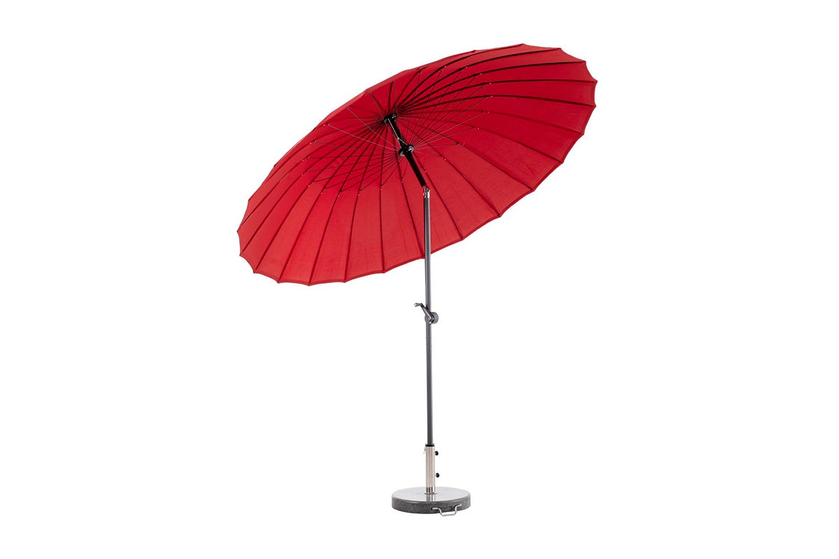 Shanghai ist ein moderner Sonnenschirm mit großzügigen Abmessungen und einem UPF-Schutz von 50+ gegen die ultravioletten Strahlen der Sonne. Mit einem Durchmesser von 2,7 m bietet er dort Schutz vor der Sonne, wo er gebraucht wird. Der Sonnenschirm verfügt über eine solide Kurbel und eine schwenkbare Stange, die es leicht macht, kühlen Schatten zu spenden. Im angewinkelten Zustand werden die vielen eleganten Stahlrippen sichtbar – Form und Funktion in perfekter Harmonie. Dieser Sonnenschirm bereichert Ihren Außenbereich durch seine Kombination aus Stil und Funktion. Kurz und gut – allen Eigenschaften, die ein klassischer Shanghai-Sonnenschirm braucht.