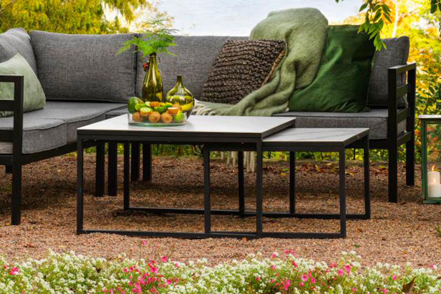 Talance ist eine Reihe von rechteckigen Seiten- oder Couchtischen, an denen Sie Ständer mit verschiedenen Brettern kombinieren. Sie sind in zwei verschiedenen Größen und Höhen erhältlich, wobei der kleine Tisch sauber unter den größeren Tisch geschoben werden kann. Die Tische passen auf viele unserer verschiedenen Sofagruppen und Sessel.