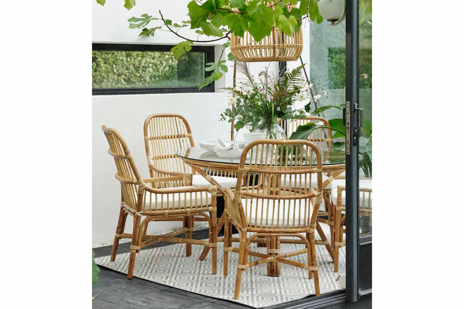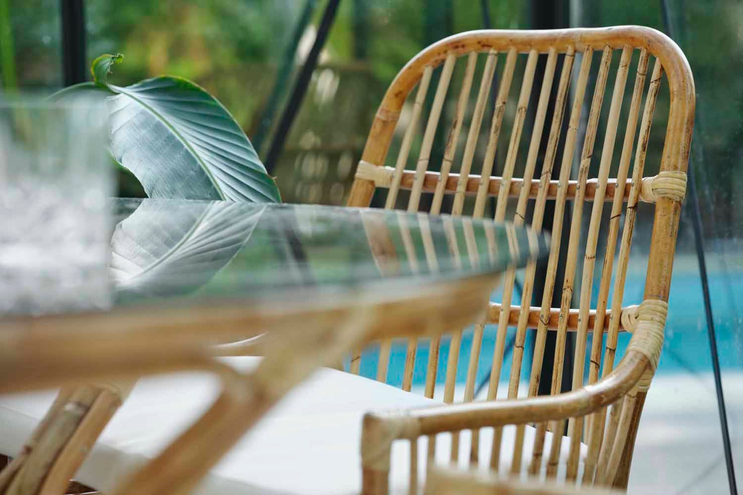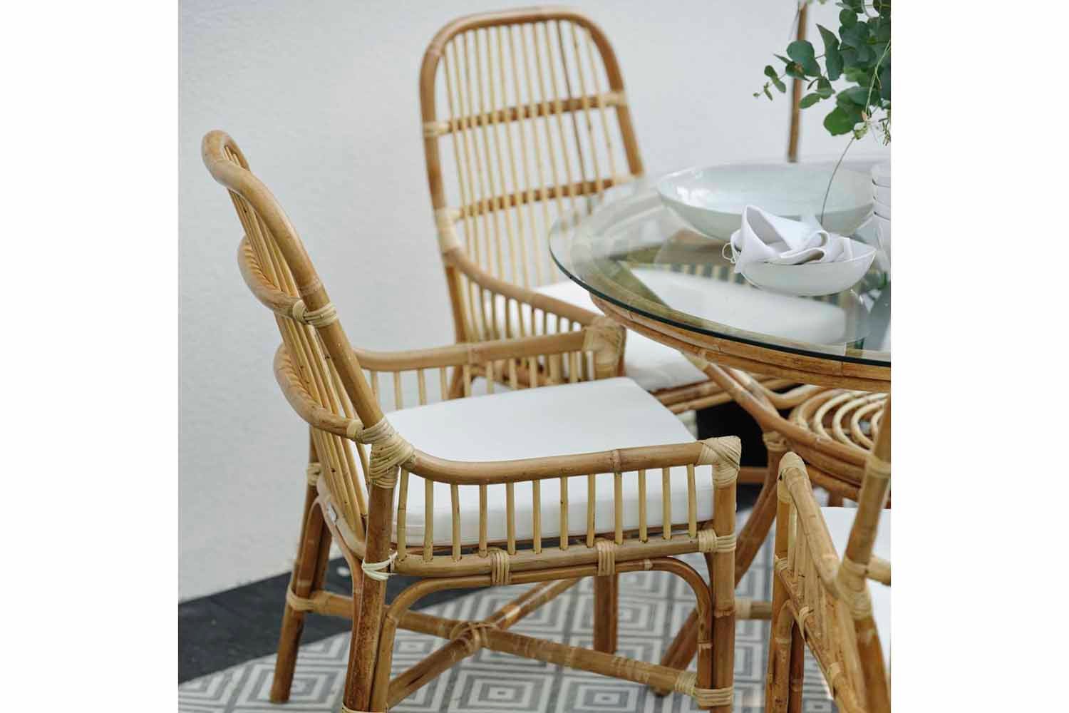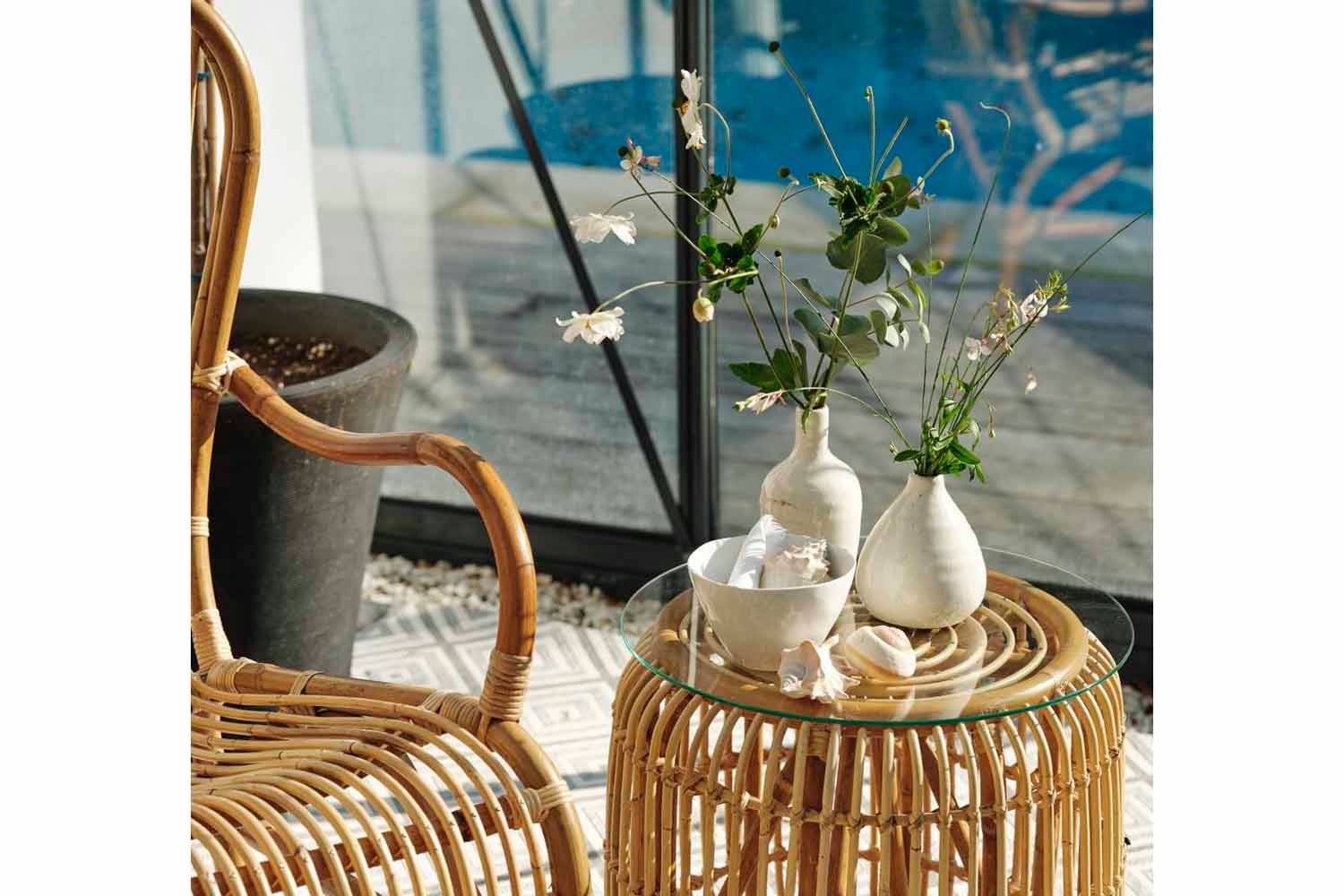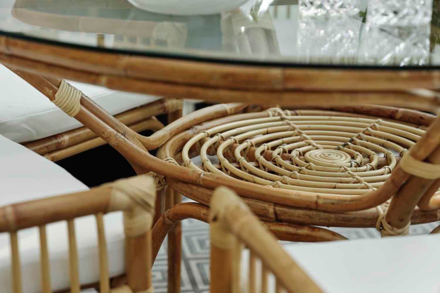 Natürliches Rattan ist geflochtenes Rattan, bei dem die Haut erhalten bleibt, was eine natürlichere Farbe und natürliche Unregelmäßigkeiten ergibt. Rattanmöbel sollten unter ein Dach gestellt werden.