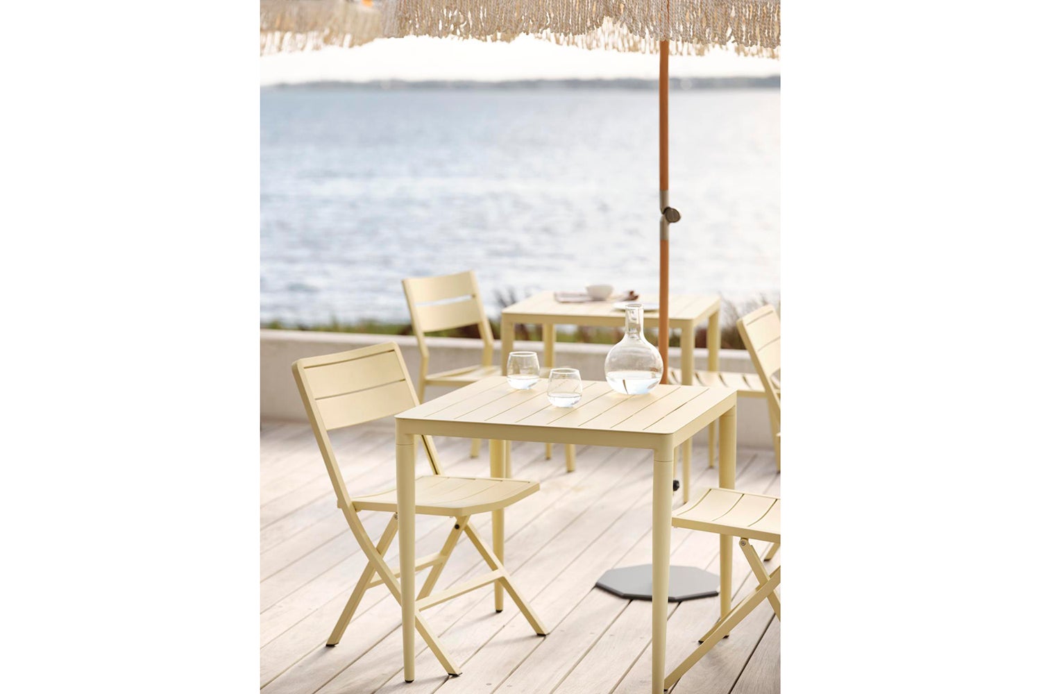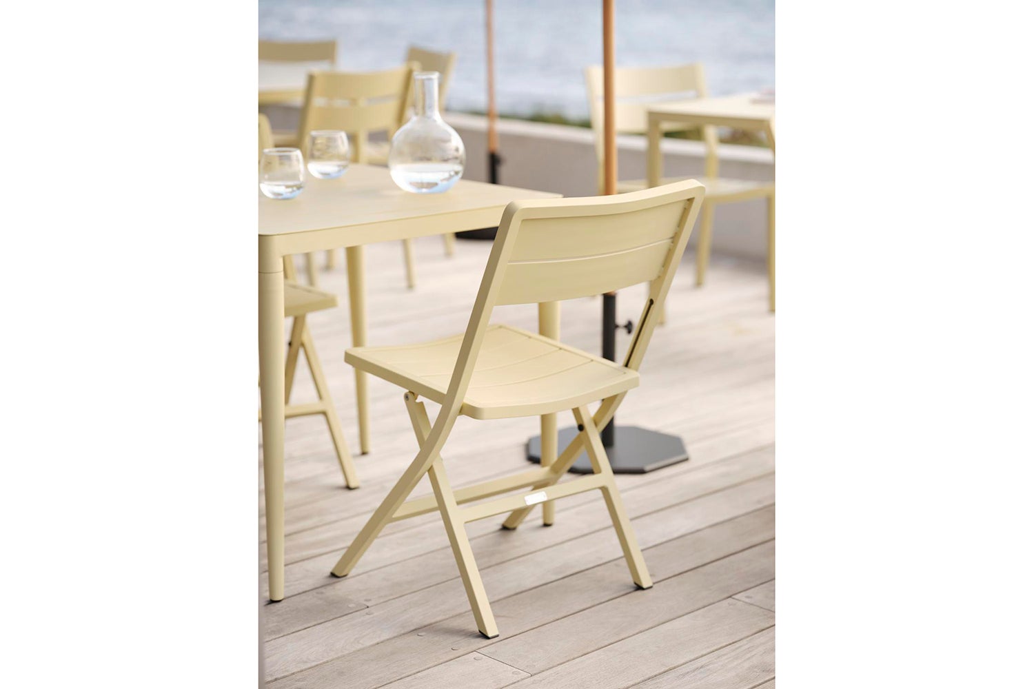 Wilkie ist eine Serie aus Aluminium, die aus modernen Klappstühlen und -tischen in tollen Farben besteht. Perfekt als zusätzliche Möbel, die bei Bedarf aufgestellt werden können, da sie zusammengeklappt nur wenig Platz brauchen.