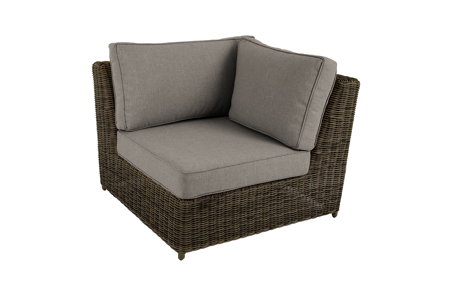 Klassische Möbel aus rundem synthetischem Rattan mit rustikaler Optik. Großzügige Sitzgelegenheiten und genau die richtige Menge an Rückenlehne machen Lust darauf, sich lange zu entspannen. Dank der verschiedenen Teile können Sie genau die Gruppe zusammenstellen, die zu Ihrer Terrasse passt, mit Glendon können Sie das Haus wirklich nach außen erweitern.