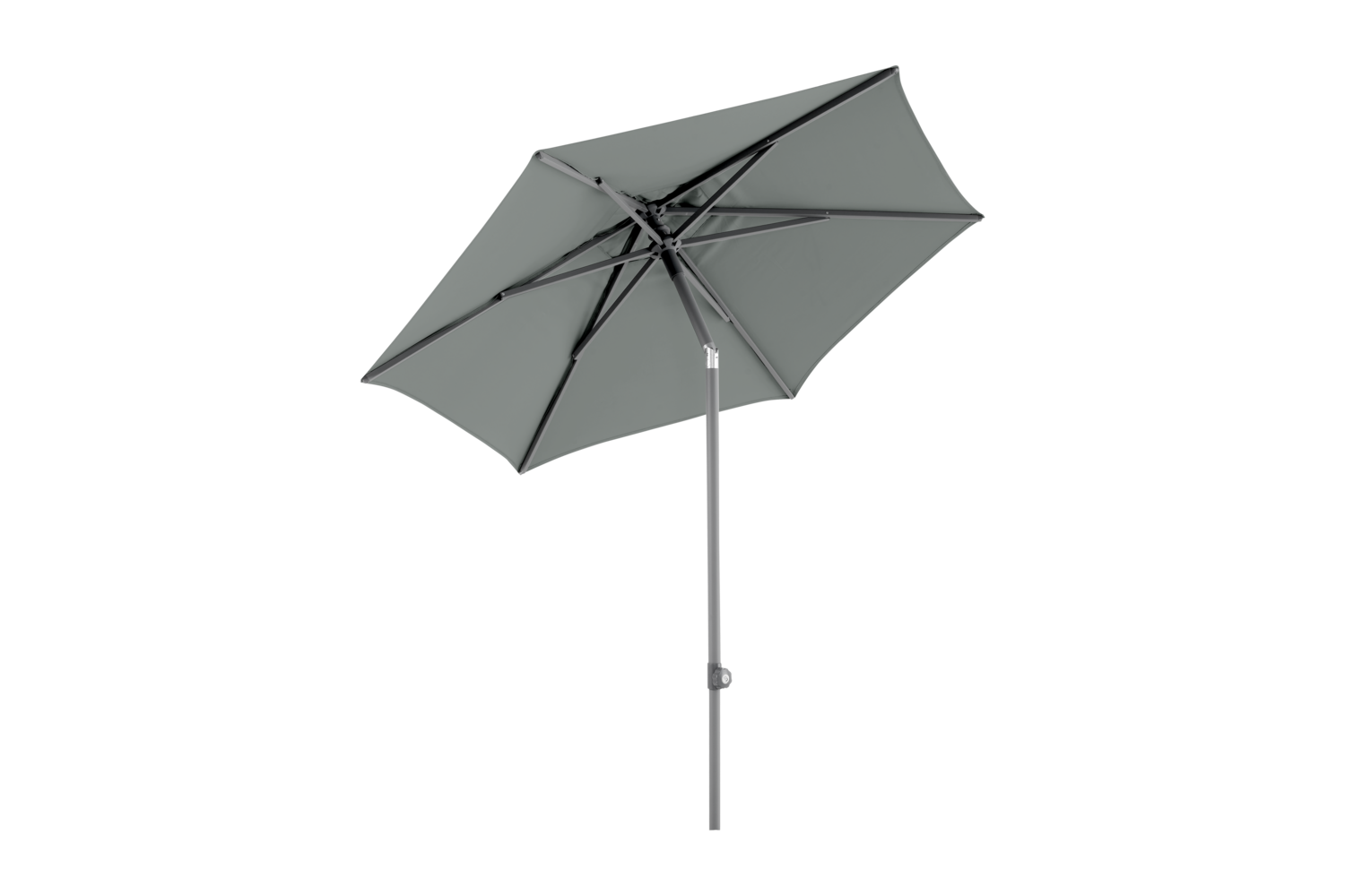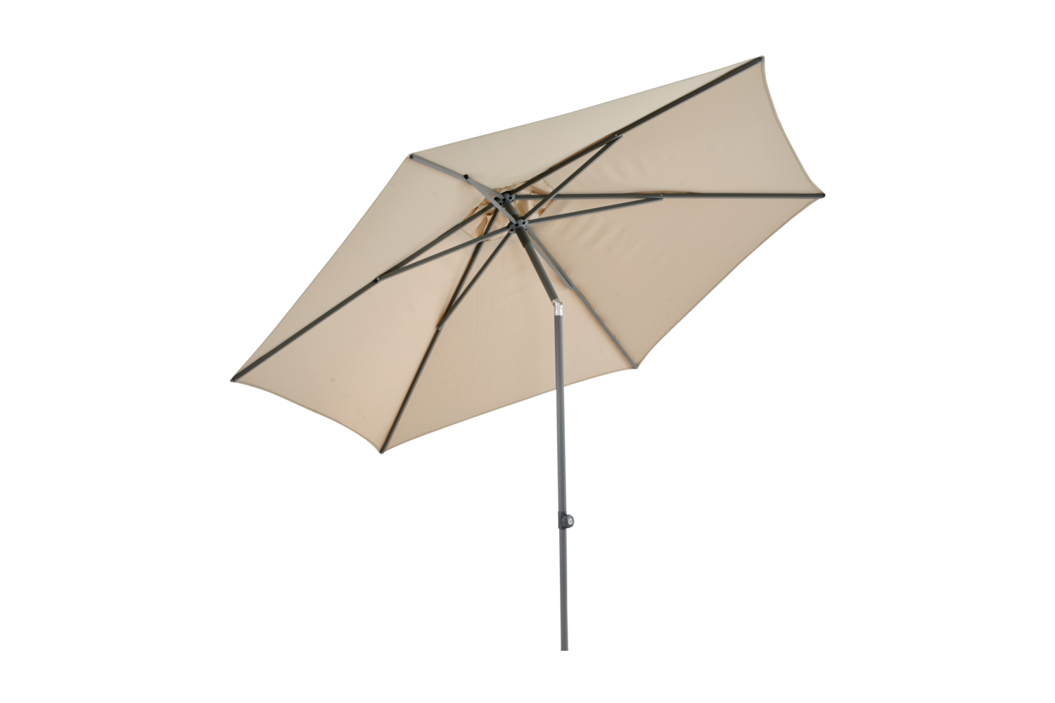 Der Poppi-Sonnenschirm verfügt über einen zweiteiligen, anthrazit-lackierten Aluminiumstab mit einem Durchmesser von 38 mm. Er hat eine Druck-Kipp-Funktion für einfaches Neigen sowie Heben und Senken. Das Öffnen des Sonnenschirms ist einfach mit dem Push-Up-Griff, der das Dach sanft ausfährt und am Ende ein kleines "Pop" erzeugt. Das Dach besteht aus 250 g solution-dyed Stoff, ist mit einer Lüftungsöffnung ausgestattet und wird von 5 Aluminiumstreben gestützt.