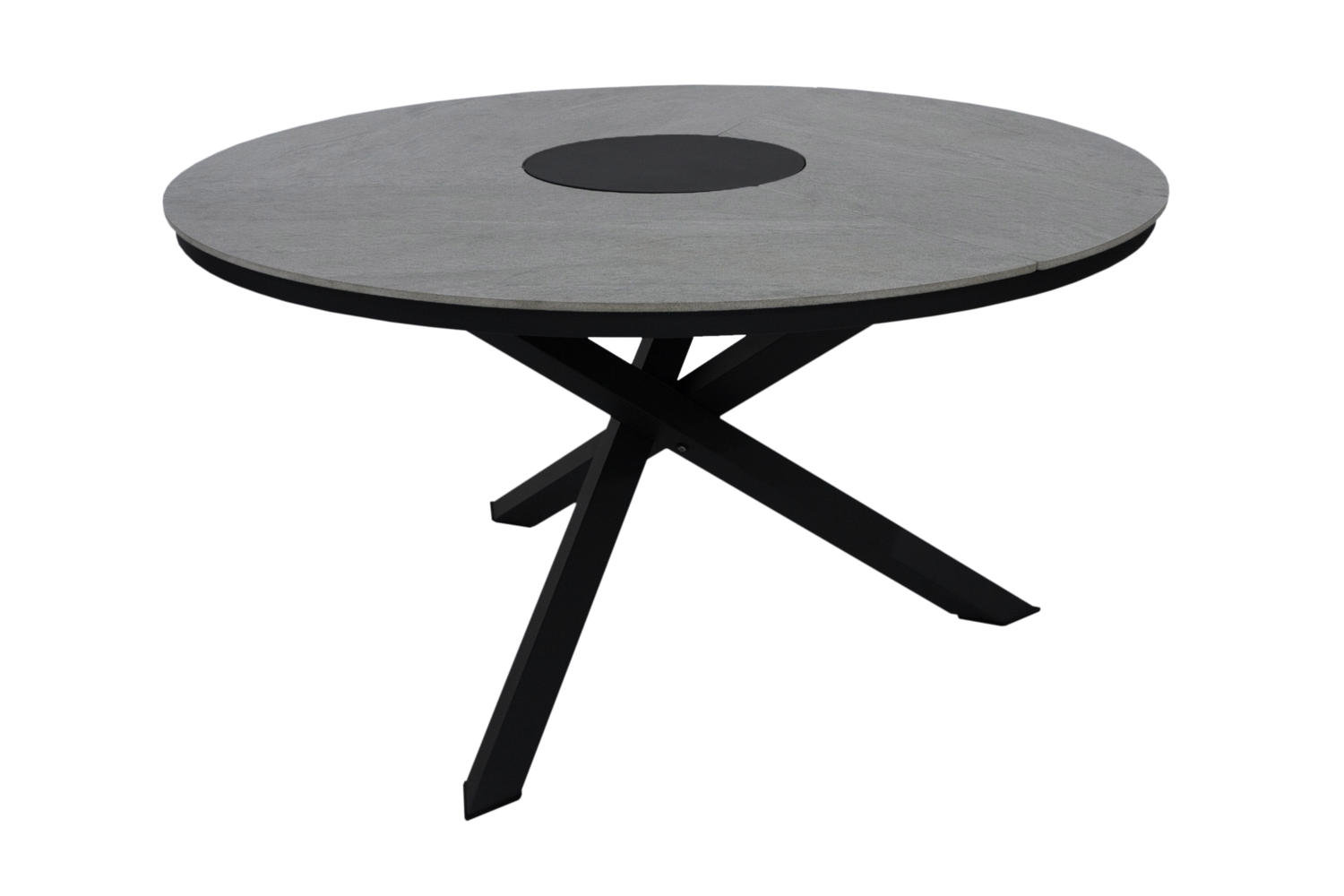 Runder Aluminiumtisch mit attraktiver Keramikplatte.